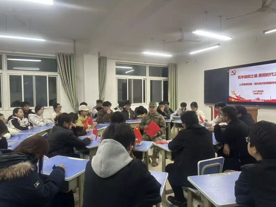 为帮助大一新生了解军旅生活、明晰大学生参军入伍相关事宜,筑牢信仰根基、勇担时代责任,以筑牢信仰之基 勇担时代之责——从军营到校园:退伍老兵的爱国传承课”为主题,土木工程学院于11月11日组织专题分享活动,邀请我院专升本退役老兵王浩同学为新生开展经验交流。