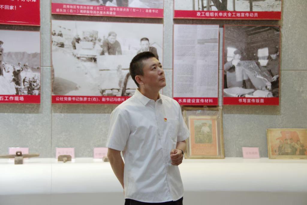 活动伊始,师生党员走进淌水崖水库陈列馆,在展厅中央的鲜红党旗下庄严列队。建筑工程学院党委书记刘增武领誓,全体党员高举右拳,面向党旗重温入党誓词。铿锵誓言与馆内“自力更生、艰苦奋斗”的标语交相辉映,党徽在陈列的历史照片与锈迹斑斑的施工工具映衬下熠熠生辉。