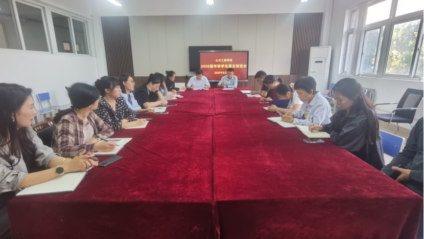 9月29日下午,土木工程学院在306会议室举行2026届考研学生报名工作推进会议。土木工程学院院长王腾、土木工程工程学院党委书记刘增武、教学副院长杜云霞、院系考研负责人王强、考研班辅导员、导师参加。