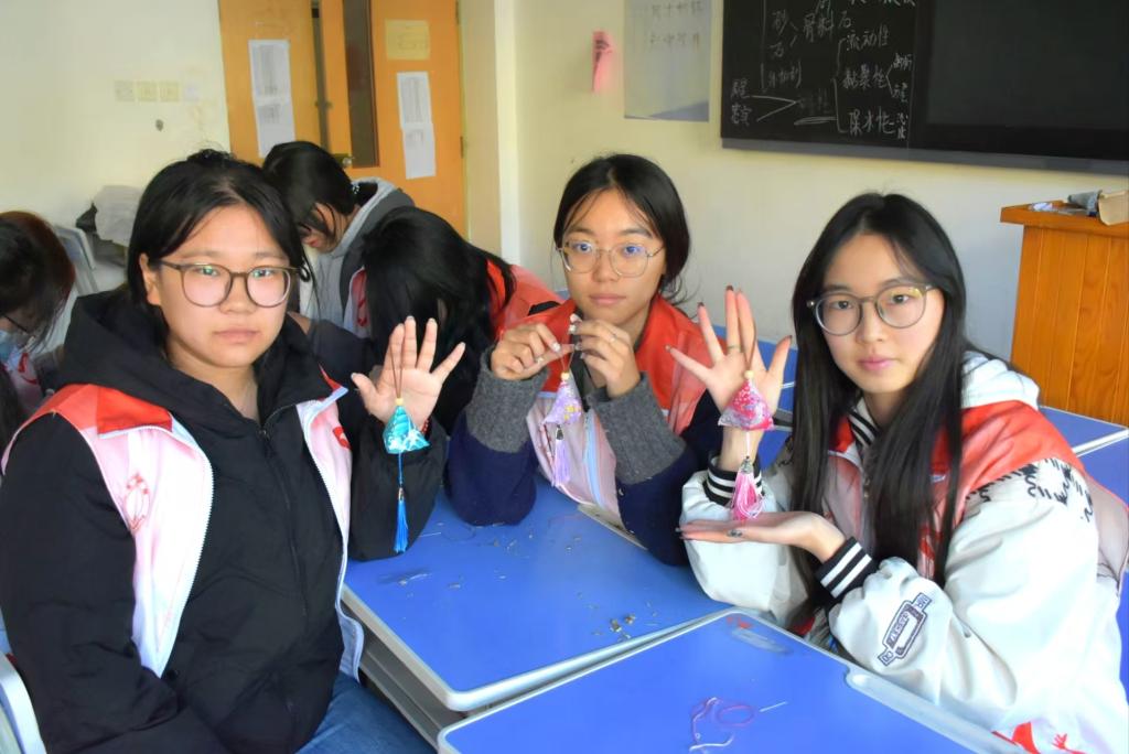 活动尾声,学生手持扭扭棒花朵与香囊,同组内成员合影留念,借镜头定格温馨瞬间。
