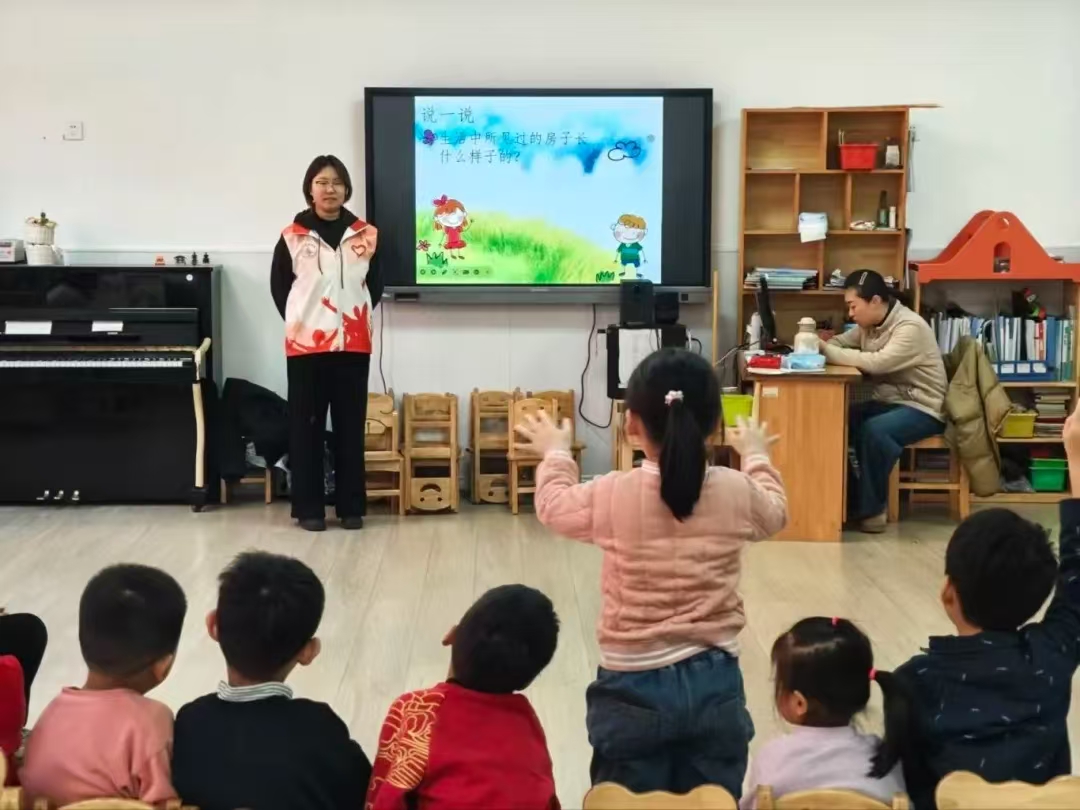 活动伊始,志愿者带着精心准备的科普课件,以“趣味问答”的形式开启科普环节。用通俗易懂的语言,向孩子们讲解建筑的基本特征、功能分类及色彩搭配常识,全程注重互动引导与鼓励表达,让抽象的建筑知识变得生动。