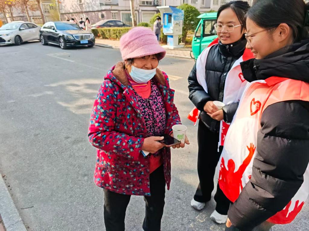 活动当天,志愿者们早早来到社区指定地点搭建服务点位,现场冲泡暖茶。一杯杯热气腾腾的暖茶,不仅温暖过往居民、环卫工人和社区值守人员的手,更温暖他们的心。