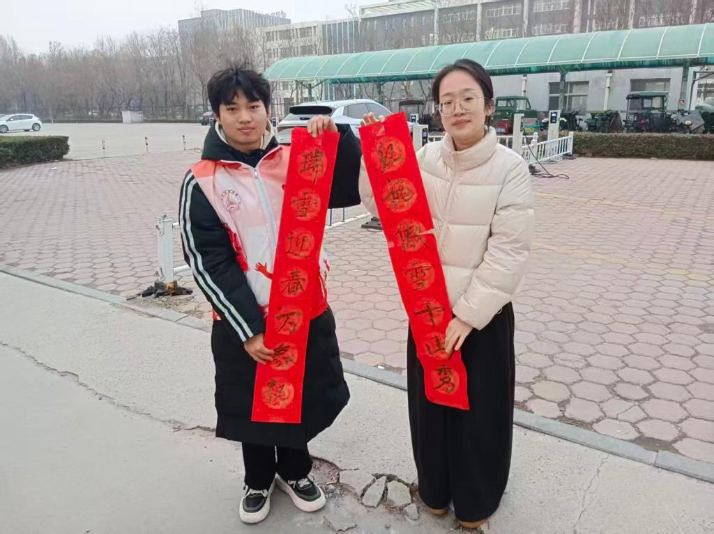 随后,同学们分组投入创作,有的对照模板潜心临摹,有的自由构思挥毫泼墨。完成书写后,大家精心搭配福字贴纸进行装饰,并认真检查字迹工整度。活动尾声,志愿者们带着春联走进社区,将一幅幅满载祝愿的春联赠予居民。伴随一声声“新春安康”的问候,温暖在寒日中缓缓流淌。
